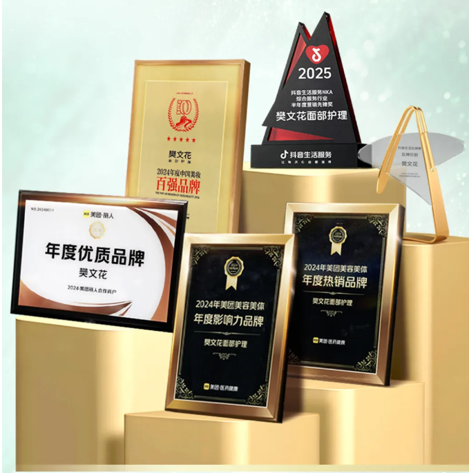 在新零售版块更是斩获美团抖音微信视频号23个项奖,成为其中最具科研实力及综合实力的国货品牌。截至2025年9月,樊文花遍布全国400+城市,全国累计超过6000多家门店。